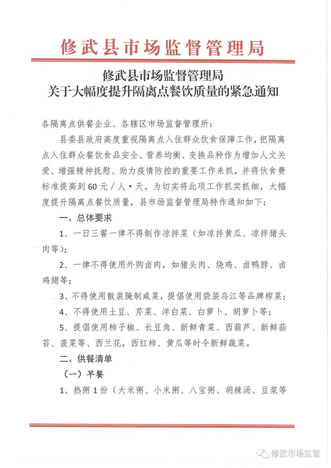 4月2日,市场监管局隔离点餐饮监管专班结合各隔离点隔离人员入住时间越来越长,加上临近清明小长假,群众想回家,思想不稳定的情况,迅速出台了《关于大幅度提升隔离点餐饮质量的紧急通知》,要求各供餐单位以大局为 ...