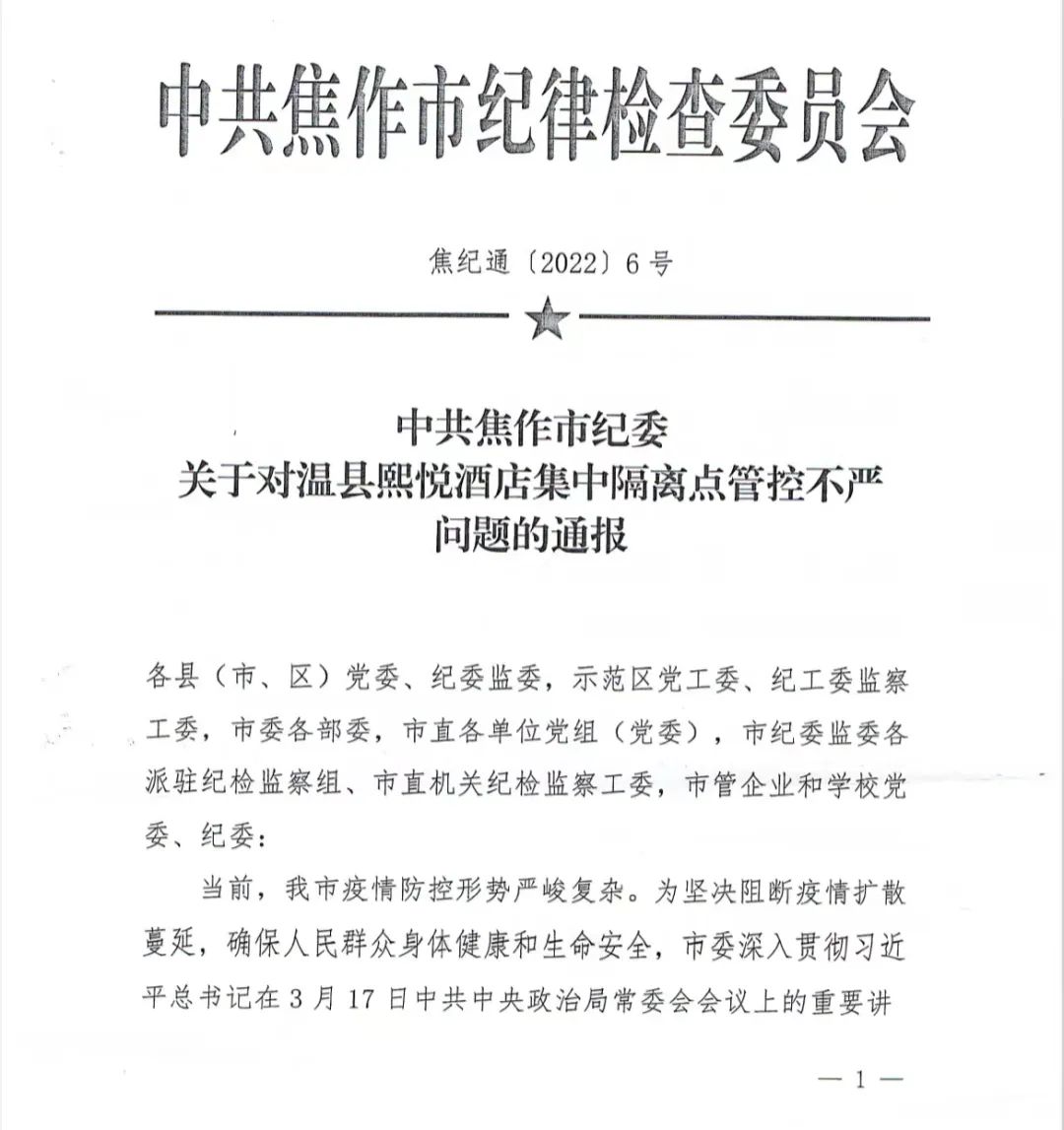 3月20日下午,市纪委监委在暗访督查中发现温县熙悦酒店集中隔离点存在管控不严问题。市纪委监委要求温县纪委监委迅速启动问责程序。经查,温县公安局交警大队值班人员一人脱岗、一人不认真履职,温县妇幼保健院驻隔 ...