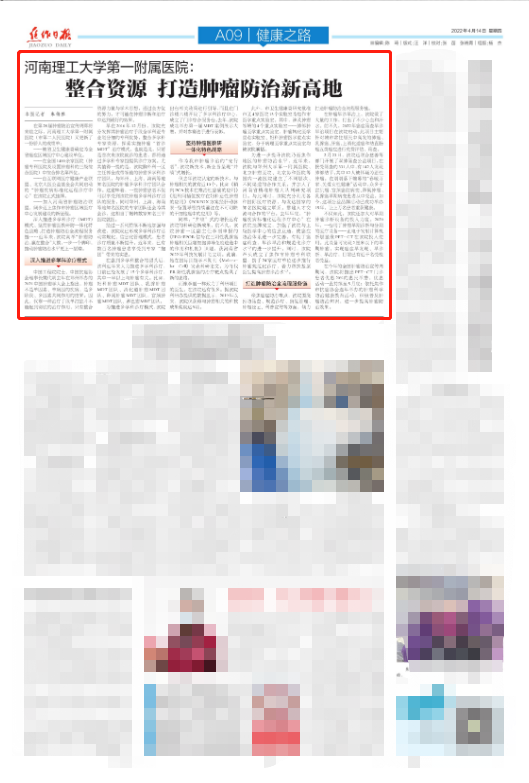 一年一度的“4·15全国肿瘤防治宣传周”即将到来,今年的主题是”整合资源,科学防癌“。《焦作日报》以《河南理工大学第一附属医院:整合资源 打造肿瘤防治新高地》为题,对我院防癌抗癌工作进行了详细报道—— ...