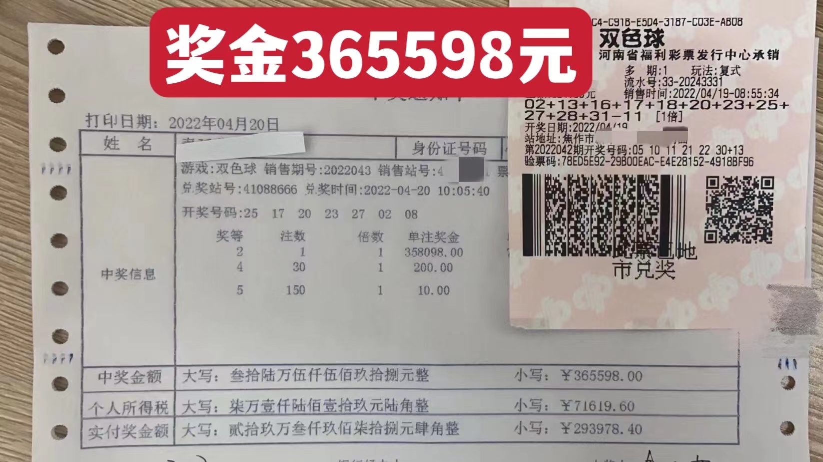 齐聚力量,斩获大奖!焦作多人合买双色球,喜中36万余元大奖! 4月19日晚,福彩双色球第2022043期开奖。当期开奖号码为“02、17、20、23、25、27+08”。焦作多位幸运彩民凭借一张“11+1”的复式自选票幸运中得二等奖 ...