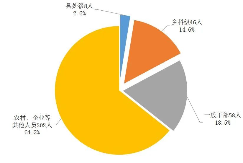 2022年第一季度,全市纪检监察机关共接收信访举报347件,处置问题线索529件,谈话函询125件次,立案235件,处分314人(其中党纪处分266人)。处分县处级干部8人,乡科级干部46人,一般干部58人,农村、企业等其他人 ...