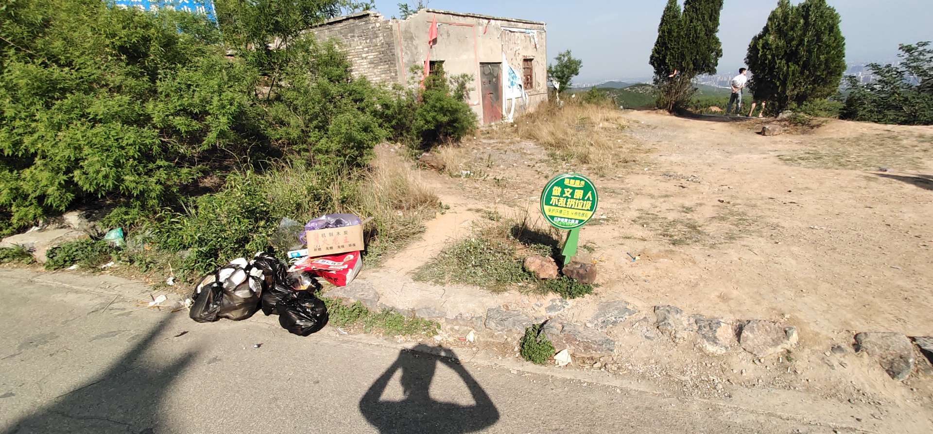 能负重带上红砂岭,吃完了,重量减轻了应该再把垃圾带回去,旁边就立有牌子,难道是不识字吗?望丢垃圾的人看见帖子,请你主动上山把垃圾带走,否则的话,就问候你…… ...
