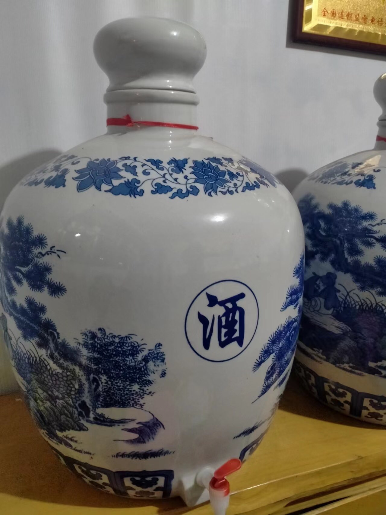 朋友店不做了,现有青花大酒坛处理,有11个,酒坛容量为可以装120斤酒,美观好看。现处理价100元1个,可小刀。