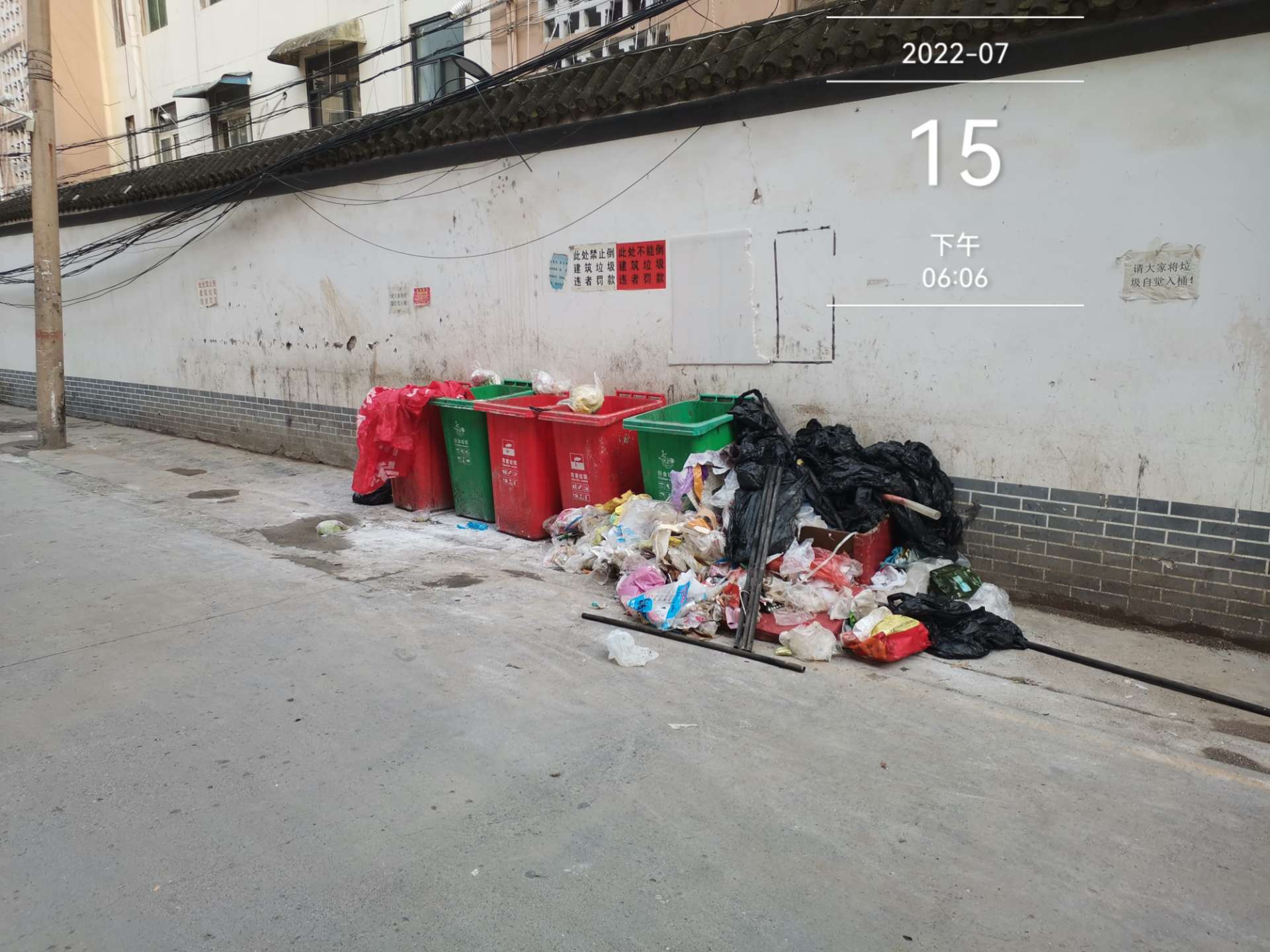 山阳区艺新街道工字路社区焦东北路三号院全院一百多户平房,就在院门囗设了五个垃圾桶,垃圾乱扔,遍地都是,苍蝇乱飞,污水横流,多次向社区,街道,12345,反映,无人处理,听之仼之,反映无门,一句回复没有,试 ...