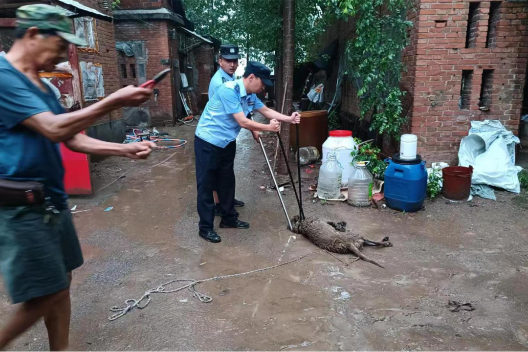 7月16日5时30分,接群众报警称:周庄辖区有两条大狼狗突然发狂,咬死村民家中70余只家禽,且有伤及群众的潜在危险。周庄派出所民警接报后迅速赶到现场,联合巡警大队将狼狗控制,成功消除了这一威胁村民生命健康的安 ...