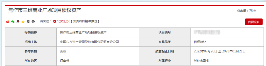 7月26日,据北京产权交易所官网发布消息,河南焦作市三维商业广场项目债权资产将进行转让招商。