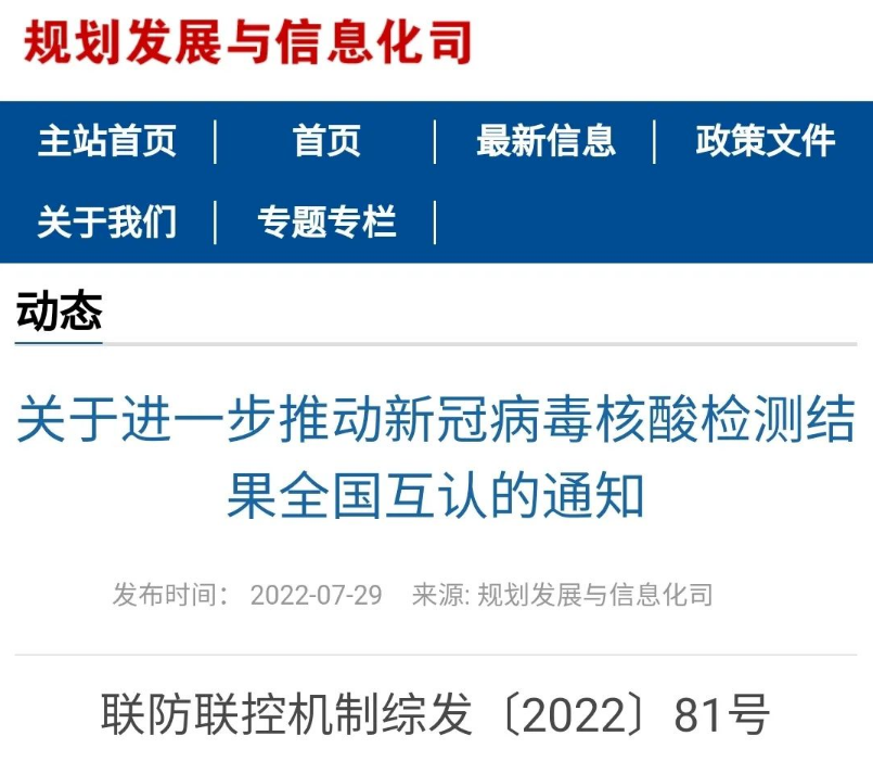 国务院联防联控机制29日印发通知,要求进一步推动新冠病毒核酸检测结果全国互认。通知要求: 高度重视核酸检测结果全国互认的重要性。各地区各有关部门要充分认识进一步科学精准做好疫情防控工作的重要性和紧迫性 ...
