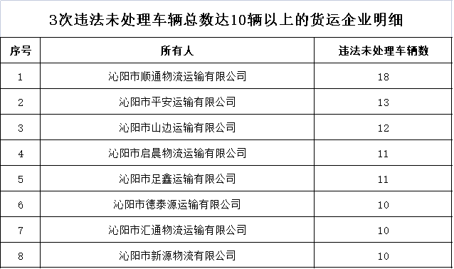 沁阳交警温馨提醒:2022年7月份我市3次违法未处理车辆总数达10辆以上的货运企业有8家现将违法突出的货运企业明细进行曝光请涉及到的企业及个体尽快清理违法车辆确保道路交通安全态势平稳 ...