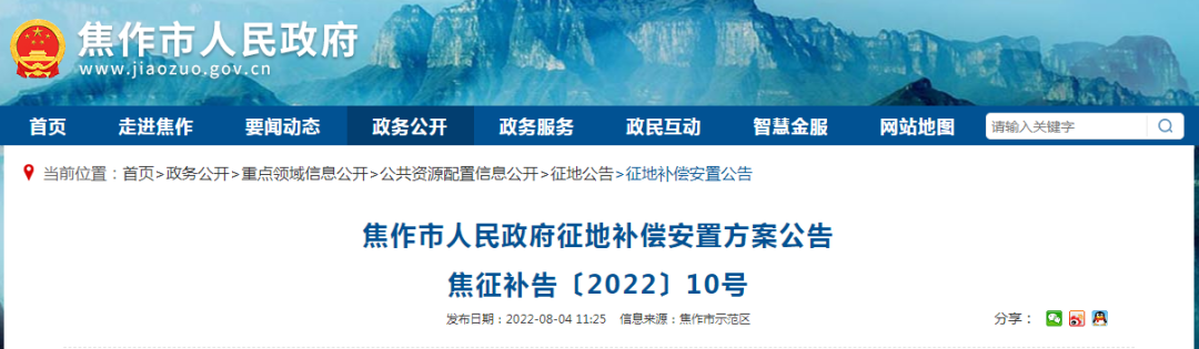 根据《焦作市人民政府土地征收土地预公告》(焦征预字〔2022〕11号)和社会稳定风险评估结果,结合土地现状调查将土地征收补偿安置方案公告如下:一、征收土地范围、目的及现状为了公共利益需要,需征收南马庄、 ...