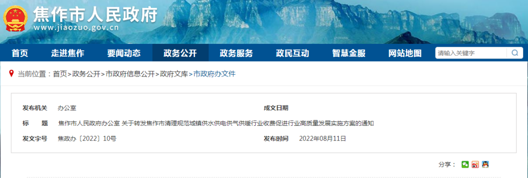 焦作人好消息来了! 近日焦作市政府明确了将清理规范城镇供水供电供气供暖行业这些收费 焦作市清理规范城镇供水供电供气供暖行业收费促进行业高质量发展实施方案市发展改革委 市财政局 ...