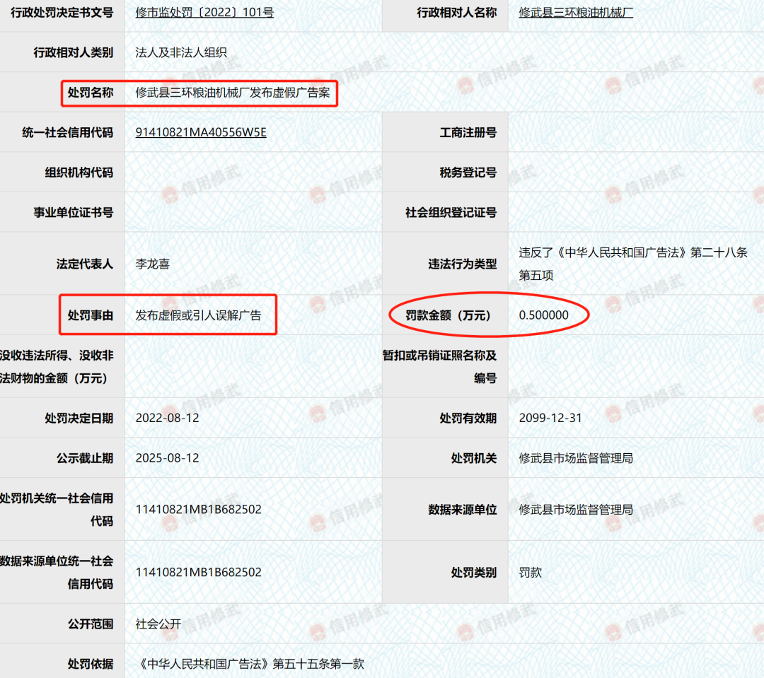 发布虚假广告!焦作一粮油机械厂被罚!