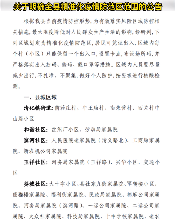 博爱:关于明确全县精准化疫情防范区范围的公告