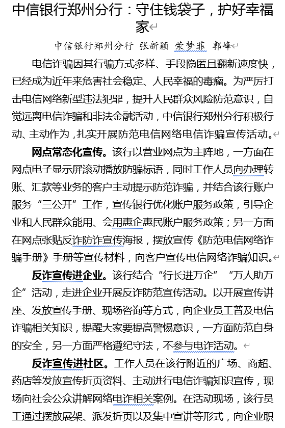 中信银行郑州分行:守住钱袋子,护好幸福家 ...