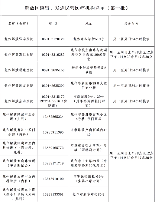 发热去哪就诊?解放区公布个体诊所和医疗机构名单! ...