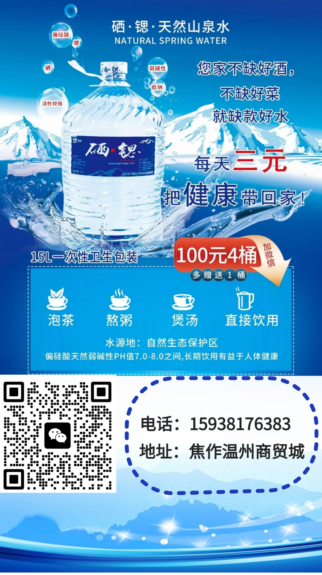 硒锶山泉富含锶、锌、硒、偏硅酸等多种对人体有益的矿物质和微量元素,为弱碱性小分子水,经常饮用有益身体健康。