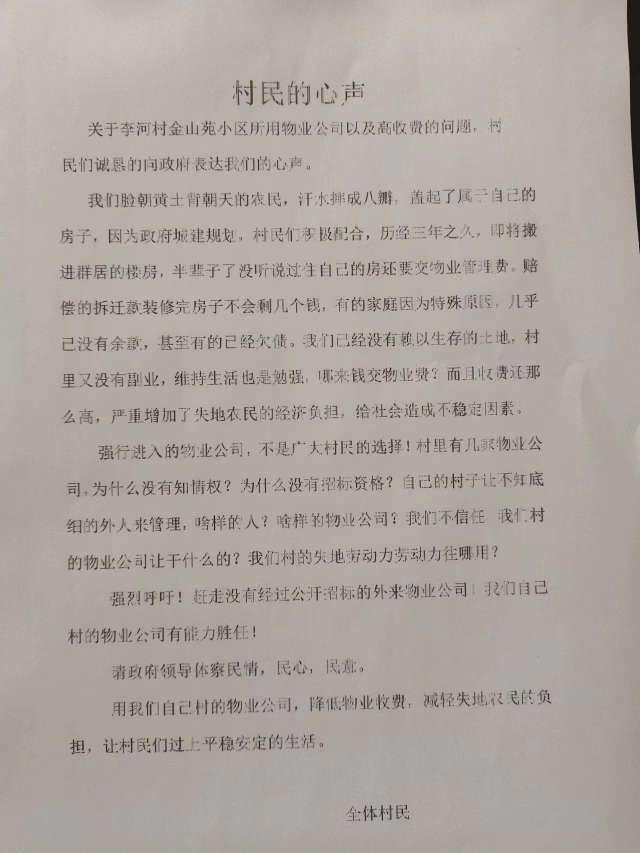 金山苑村民意见书