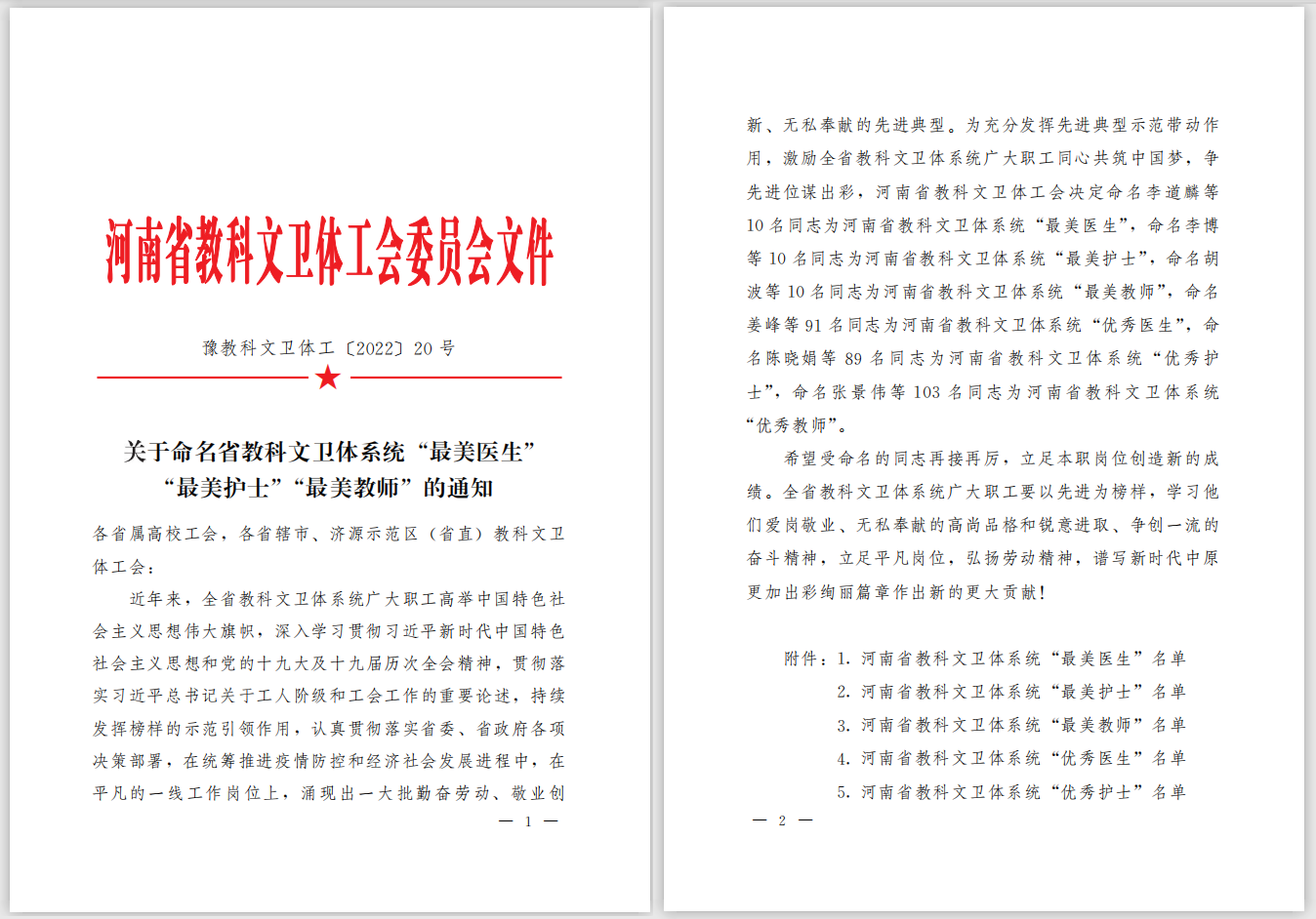 喜 报 日前,河南省教科文卫体工会委员会印发了《关于命名省教科文卫体系统 “最美医生”“最美护士”“最美教师”的通知》,在全省范围内评选出了10位“最美医生”,我院骨科一区副主任林东光荣上榜, ...
