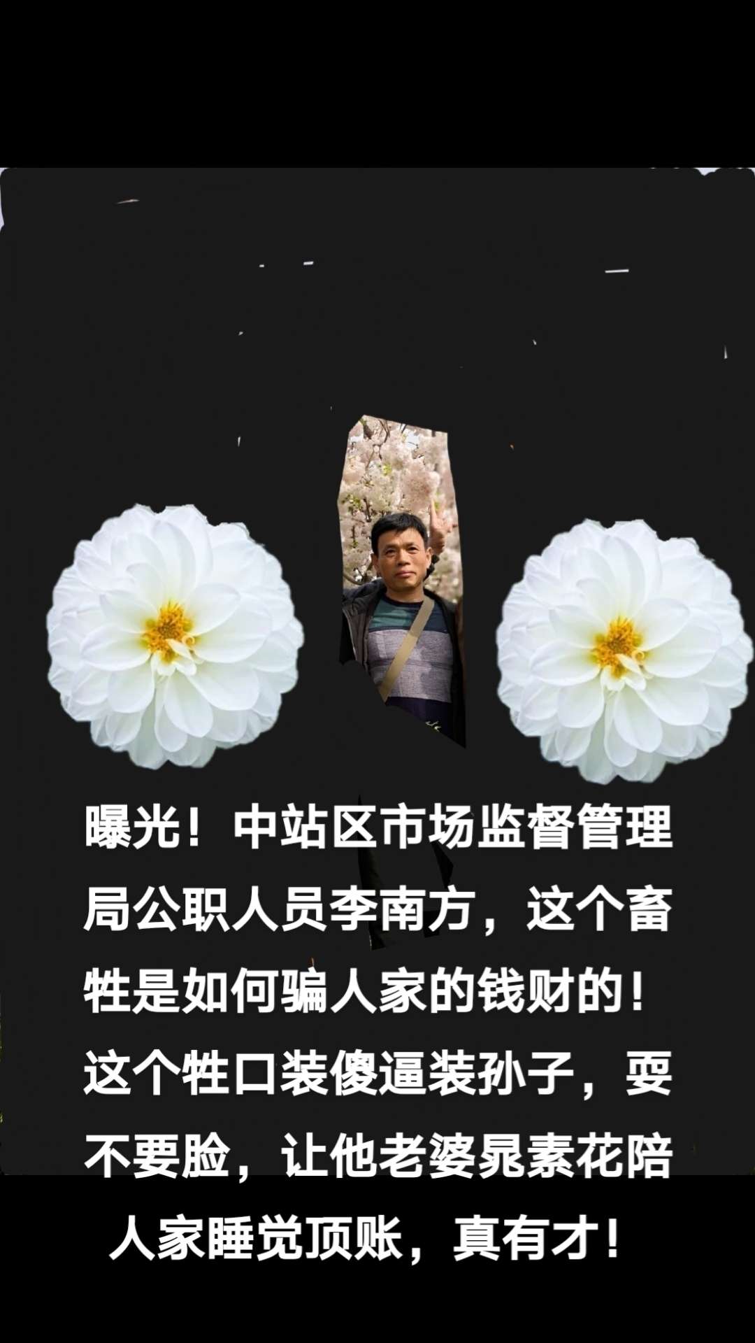 揭露焦作市中站区市场监督管理局公职人员李南方贪污诈骗非法搞传销骗子嘴脸!李南方利用公职人员身份以不良手段骗取商户巨额钱财,多次对举报人威胁恐吓诽谤造谣辱骂,性质恶劣影响面广,严重侵犯民众的私有财物,其 ...