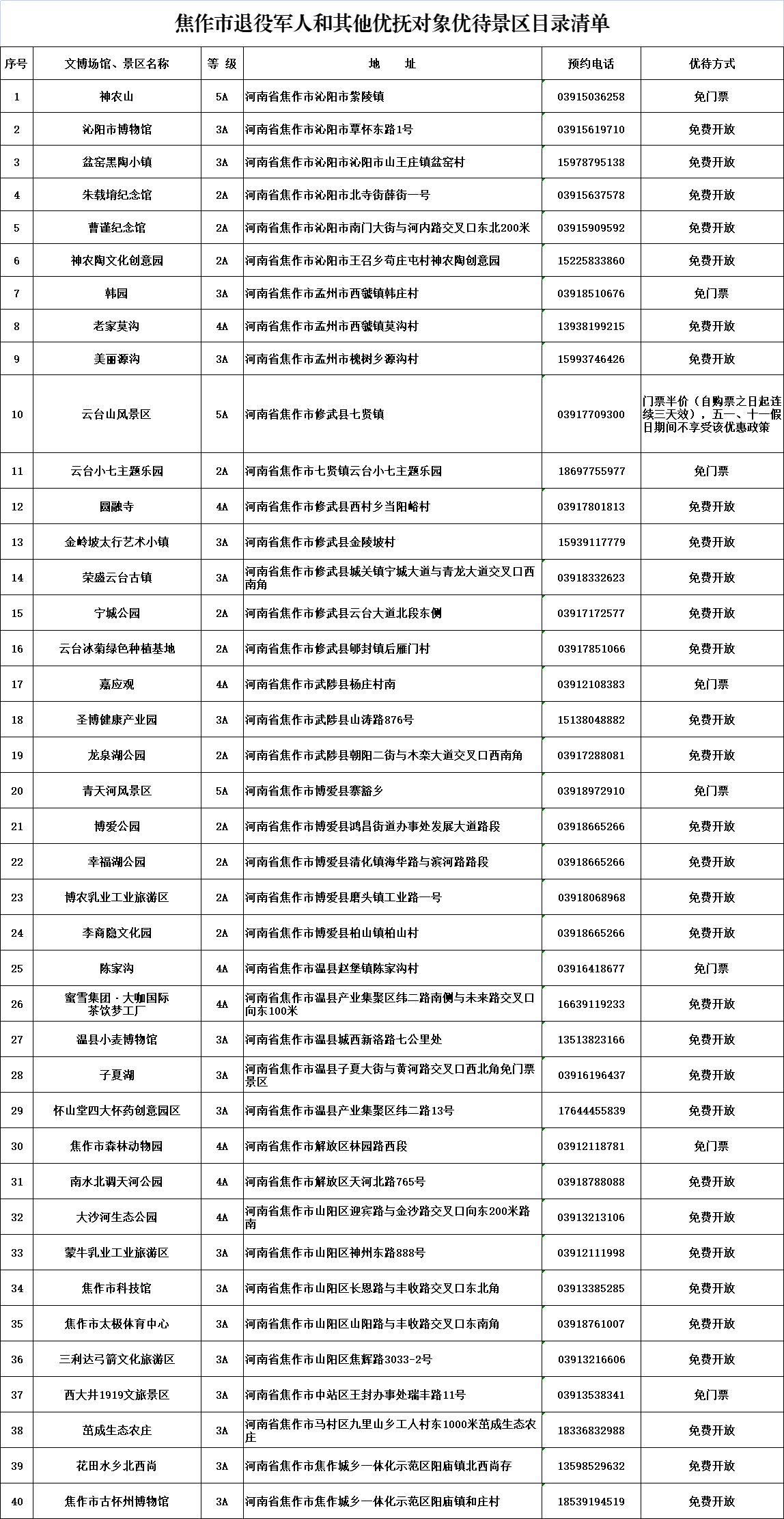 根据《焦作市退役军人事务局 焦作市发展和改革委员会 焦作市财政局 焦作市交通运输局 焦作市文化广电和旅游局关于补充<焦作市军人军属、退役军人和其他优抚对象基本优待目录清单>的通知》(焦退役军人〔2023〕14号) ...