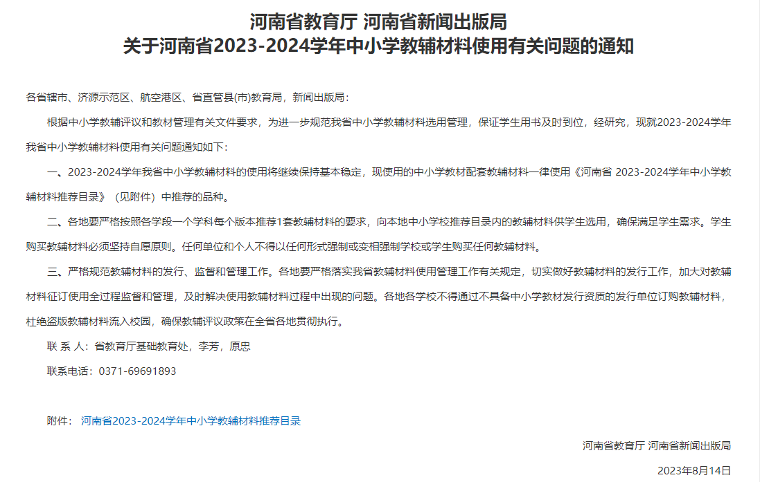 | 河南明确,任何单位不得强制学生购买教辅,支持。mobile_fromtype_android |