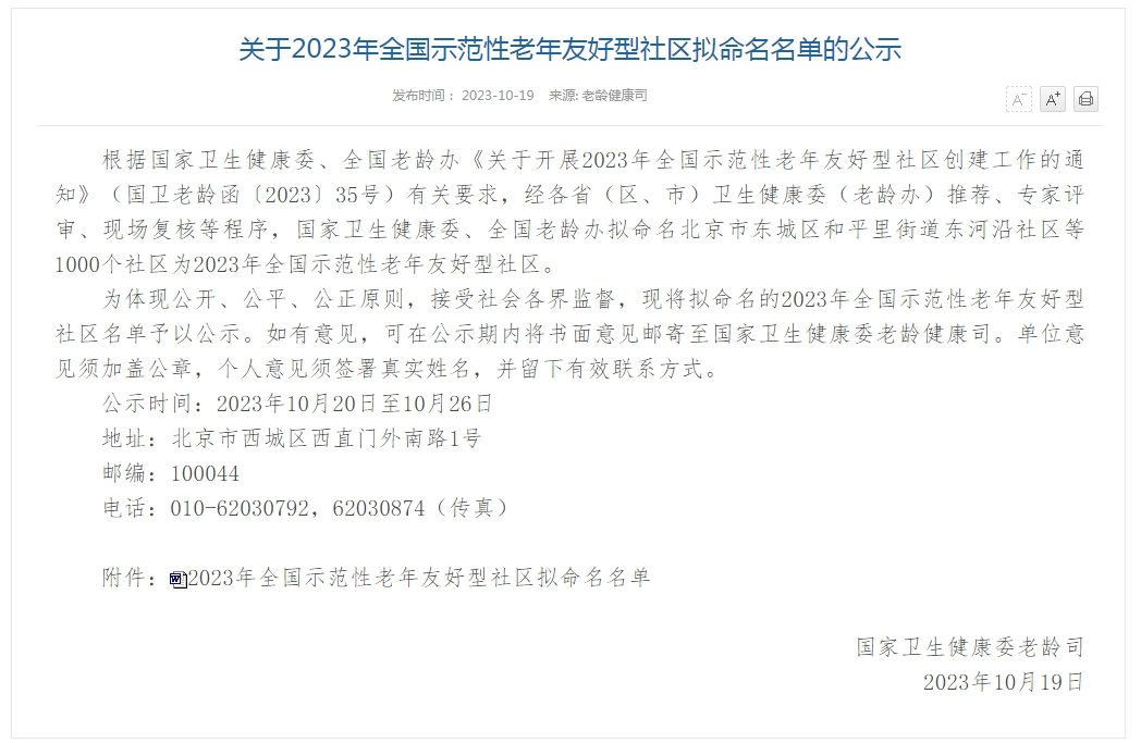 近日,国家卫生健康委网站发布《关于2023年全国示范性老年友好型社区拟命名名单的公示》,国家卫生健康委、全国老龄办拟命名1000个社区为2023年全国示范性老年友好型社区。其中,焦作有4个社区入选,一起来看看吧! ...