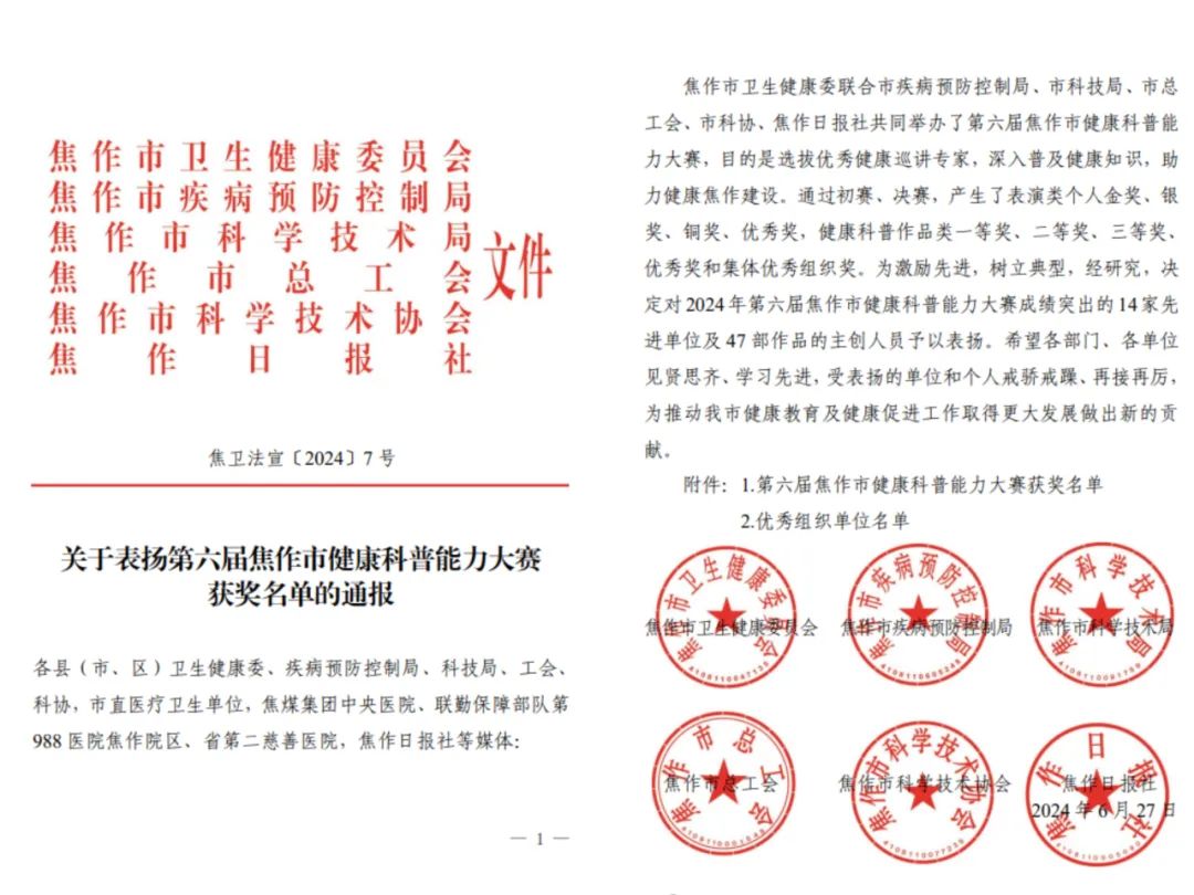 焦作市妇幼保健院在第六届焦作市健康科普能力大赛中荣获多项佳绩