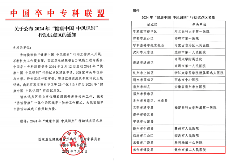 2023年度脑卒中高危人群筛查和干预项目工作全国推进会上,党委书记于拥军作为全国医院先进项目单位代表(全国仅两家),受邀首先在大会上做经验分享党委书记于拥军表示,作为“健康中国 中风识别行动”试点区牵头 ...