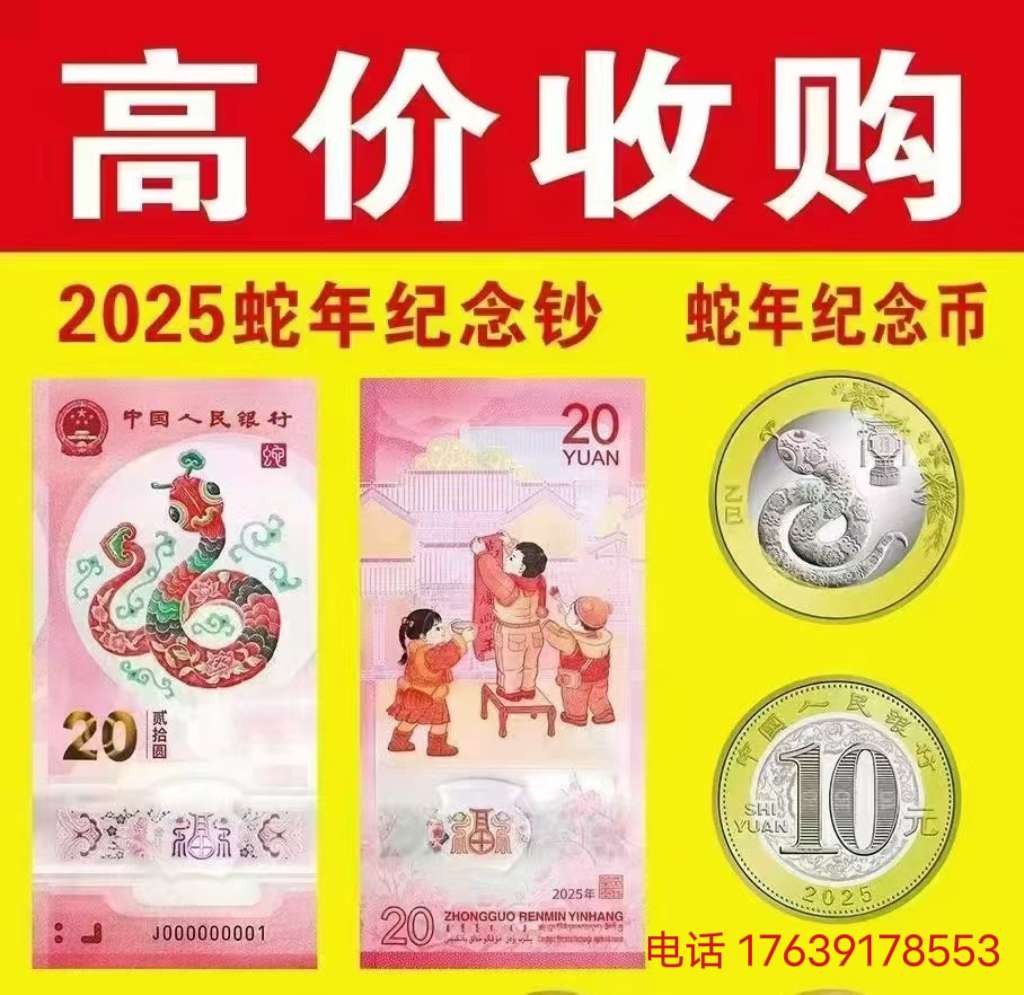 高价回收2025年蛇钞蛇币 电话 17639178553(微信同号)