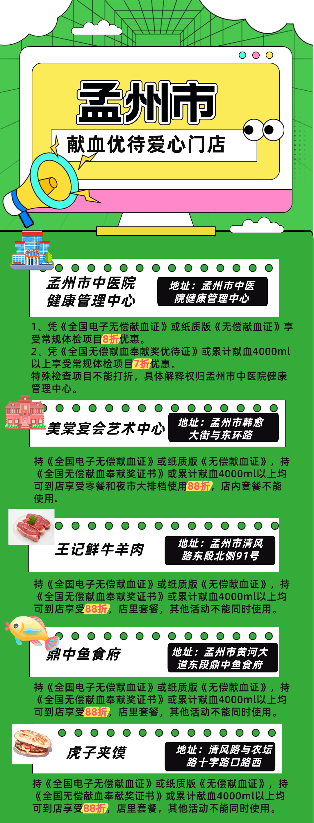 小伙伴注意喽!孟州市一大批献血优待爱心门店上线啦! ...