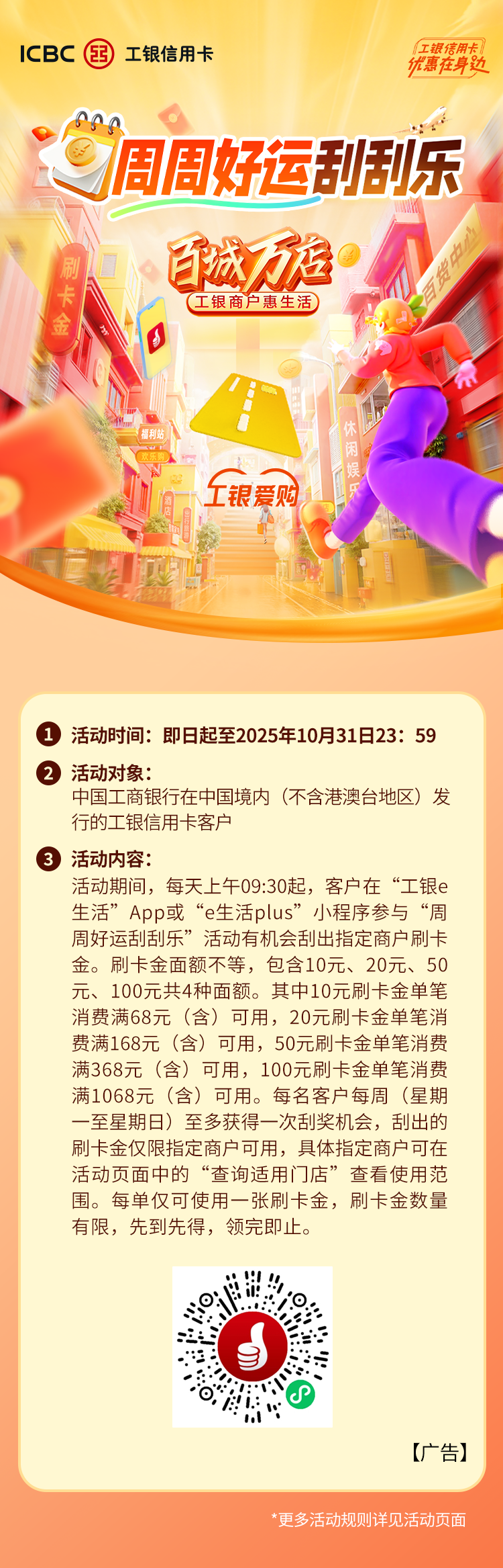 【周周好运刮刮乐】至高得100元刷卡金!