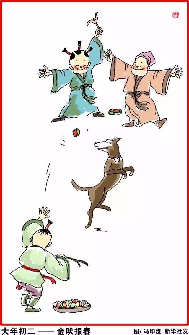 资料来源:《大年初二“姑爷节” 女婿拜年“法定日”》(记者周润健)《春节》、《漫画:大年初二 —金吠报春》等