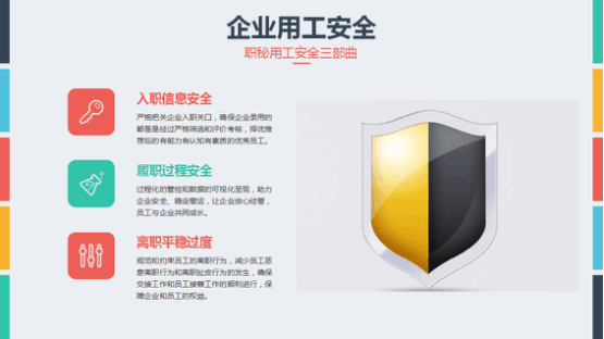 那么,企业针对这类挖墙脚、跳槽等问题,到底有没有办法破解,是否可以及早预防? 答案是——有的!根据这种情况,职秘企云提出“企业用工安全三部曲”理念,即:入职信息安全、履职过程安全、离职平稳过渡。