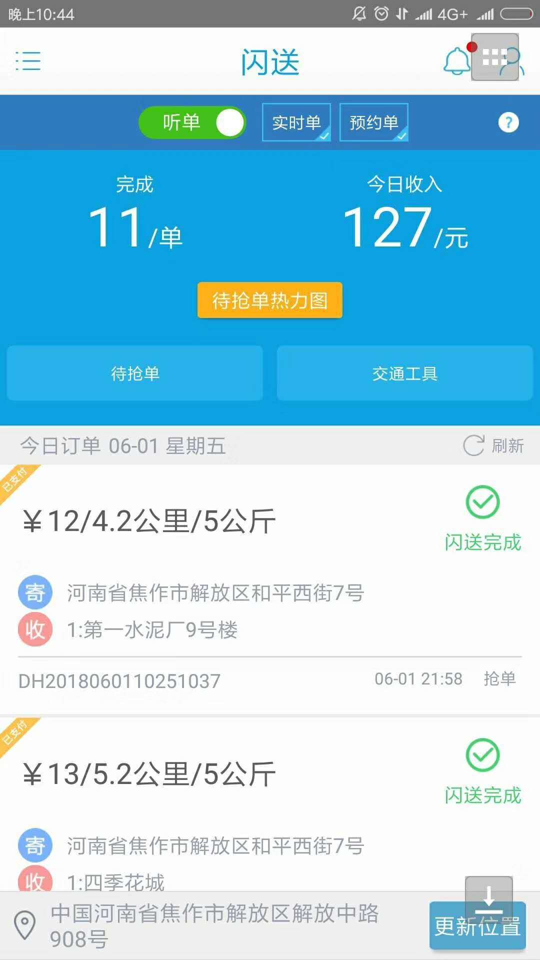 北京闪送科技急招焦作地区闪送员,兼职工作,时间自由,自己选择每天的工作时间。闪送员自己安排抢单的时间和地点,无时间和地点约束,不用每天到公司报道,不用坐班,轻松自由,收入可观,下班后,双休日都可接单。 ...