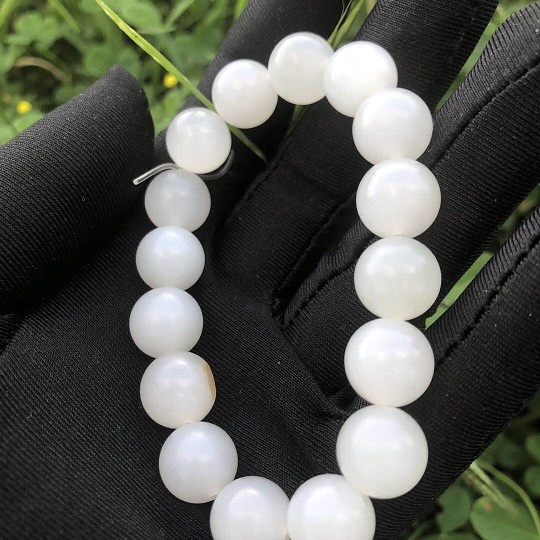 新疆和田玉籽料手链,羊脂级白玉,玉质细腻油润,一颗带皮色。精选16粒12mm的珠子穿成,佩戴高端大气,盘玩也不错。重42克>欢迎交流鉴赏,同时可免费给您代鉴定玉石,请加薇信15099627830(同TEL) ...