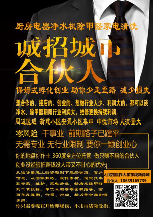 想合作的、接店的、创业的、想做行业人少、利润大的、都可以谈 净水、除甲醛朝阳行业利润大,维修更换持续利润。 |