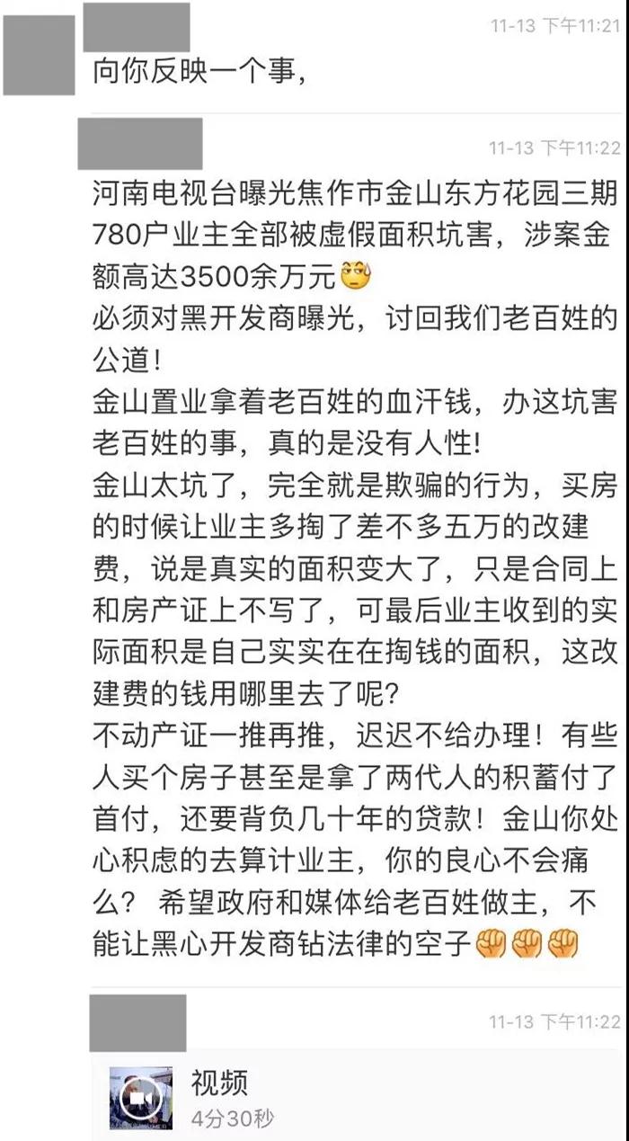 据网友爆料,焦作金山东方花园小区被曝光了!业主:存在欺诈行为...