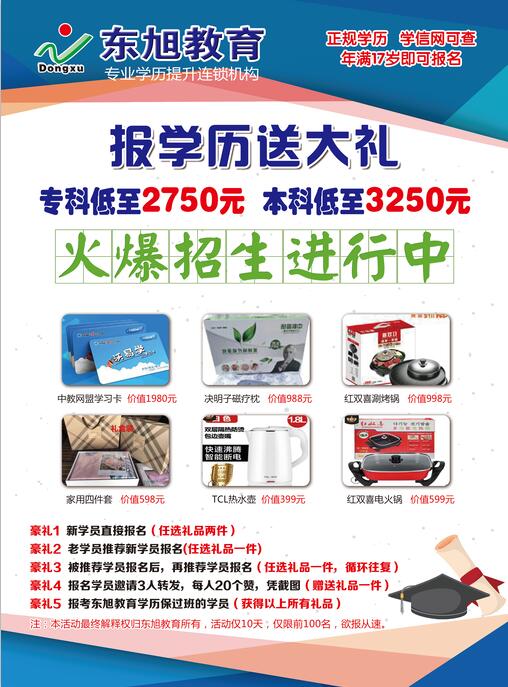 大专、本科学历报名开始 电话微信:15238616150 今年还没有报考大专、本科学历的请抓紧时间报名了,错过一年,再等一年,时间不等人! 学历有什么作用 为孩子们树立榜样 升职加薪需要学历 考公务员需要学历 考资 ...