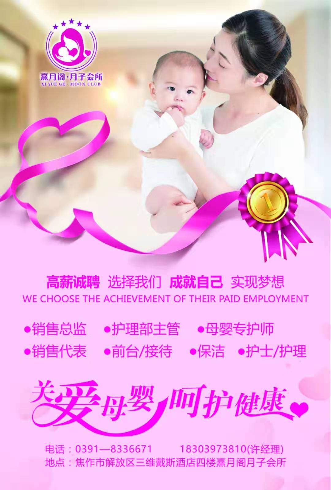 诚聘: 护士护理 / 月嫂(母婴专护师)