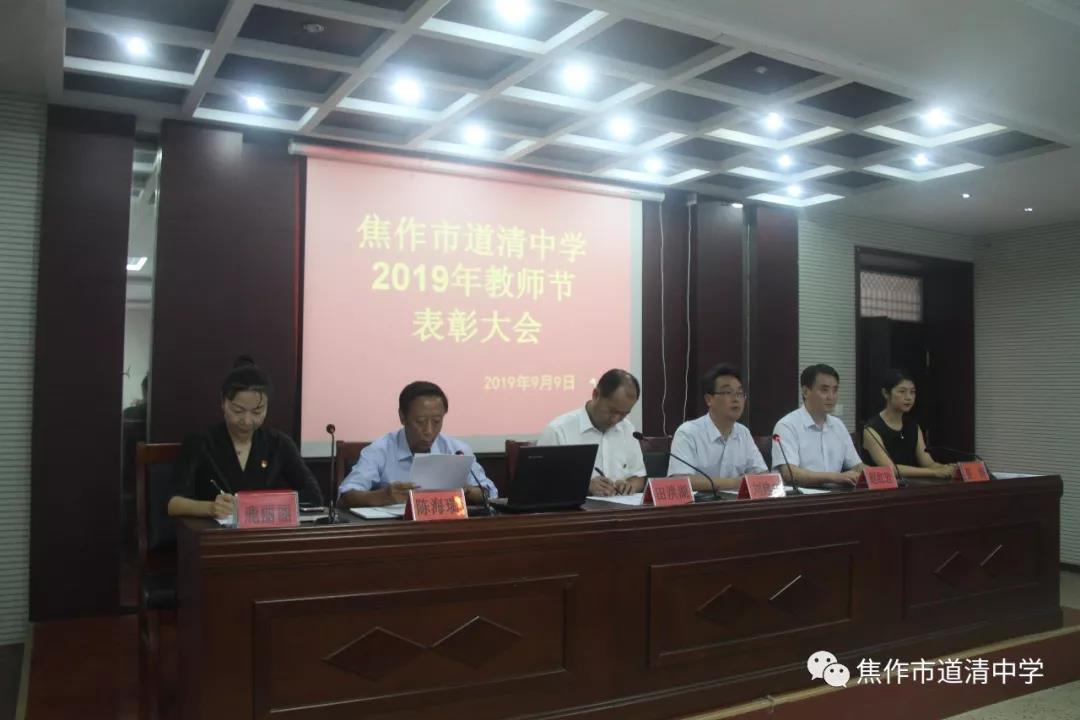 9月9日下午,焦作市道清中学在学校大会议室召开了2019年教师节表彰大会。 表彰大会上,副校长陈海瑞宣读了学校的表彰决定,市教育局副局长田洪湖 ...