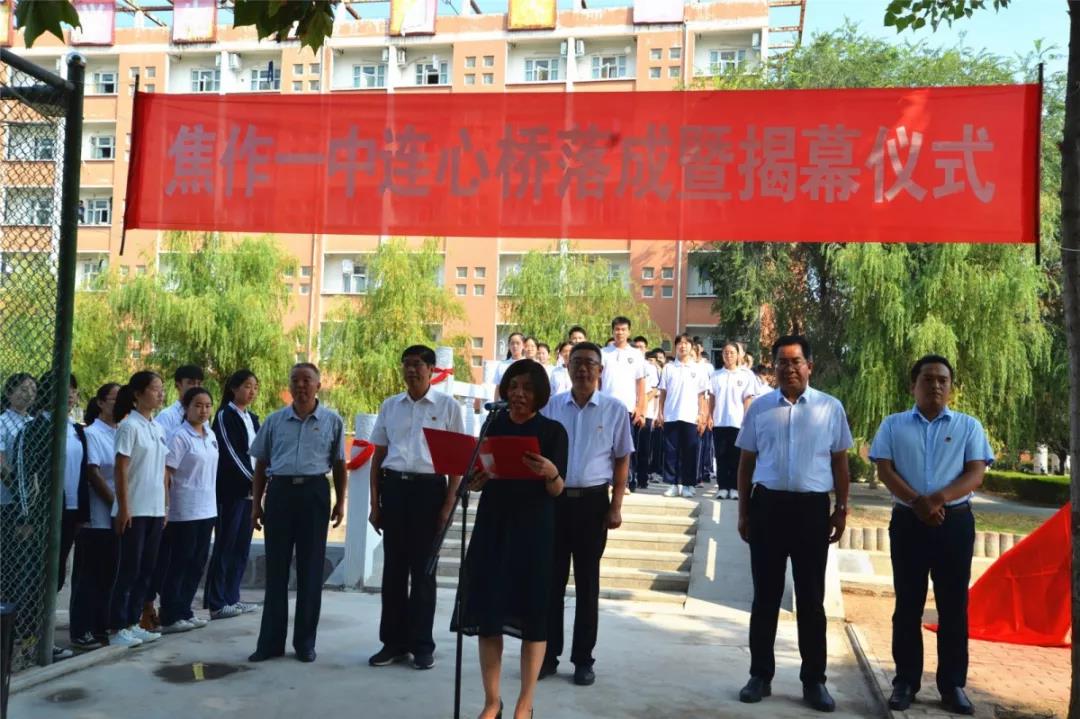 9月6日上午,焦作一中在校园内新落成的连心桥旁举行仪式,为这座爱心校友捐资修建的桥梁揭幕。学校领导班子、中层干部、教师代表、学生代表200余人参加揭幕仪式,仪式由校党委副书记薛书文主持。” ...