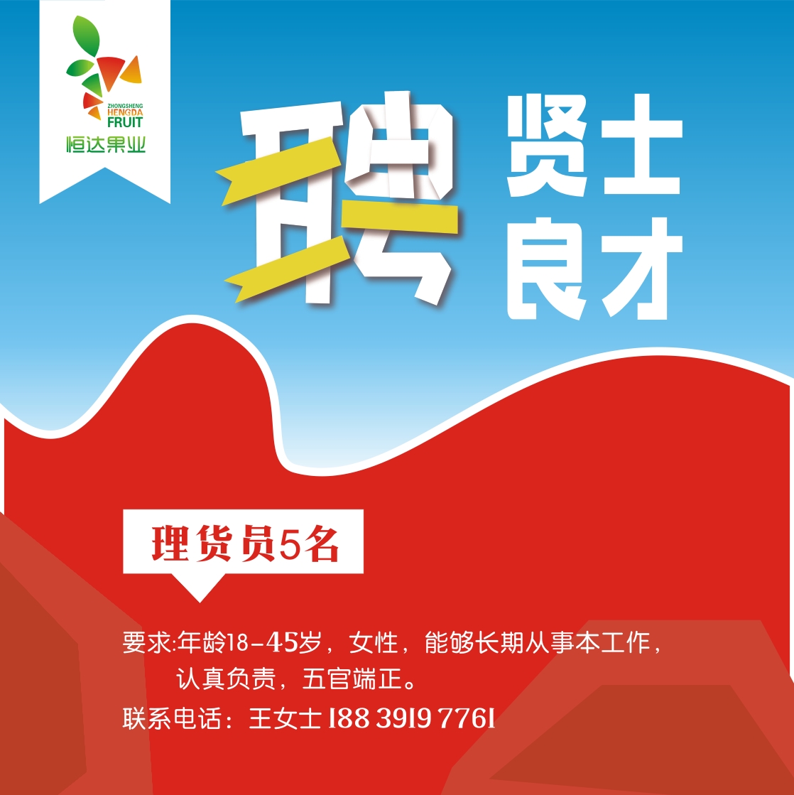 【恒达果业】招聘理货员数名。