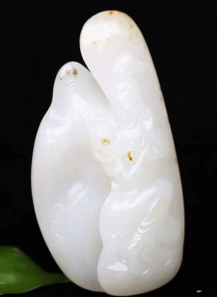新疆和田玉籽料作品莲花观音,料子白度近脂白,侧面保留秋离皮,白、细、无结构。玉面精雕观音,观音侧卧于莲花宝座之上,静目微闭,重量:75克尺寸:77.40.19mm<欢迎交流鉴赏,同时可免费给您代鉴定玉石,请加薇150 ...
