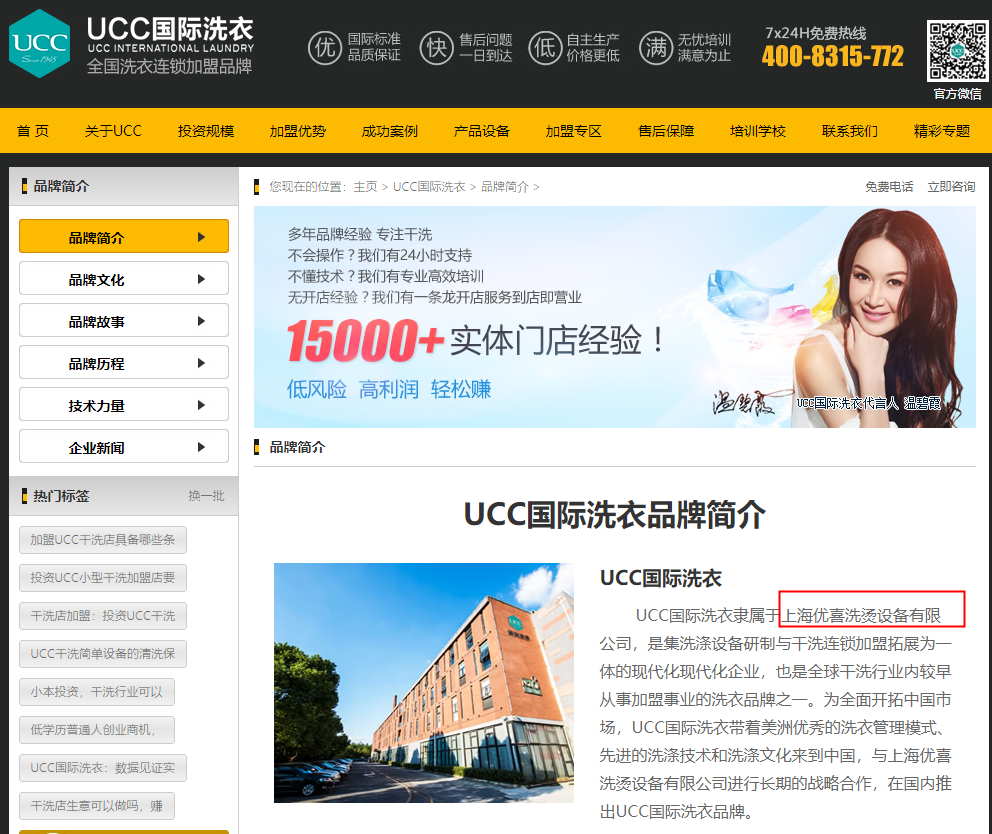 UCC官网首页品牌简介栏目下的文章声称:UCC国际洗衣隶属于上海优喜洗烫设备有限公司。而在中国商标网平台上却并没有检索到相关结果,再经查询得知商标注册是上海云端洗烫设备有限公司。目前UCC所有商标都已从上海优 ...