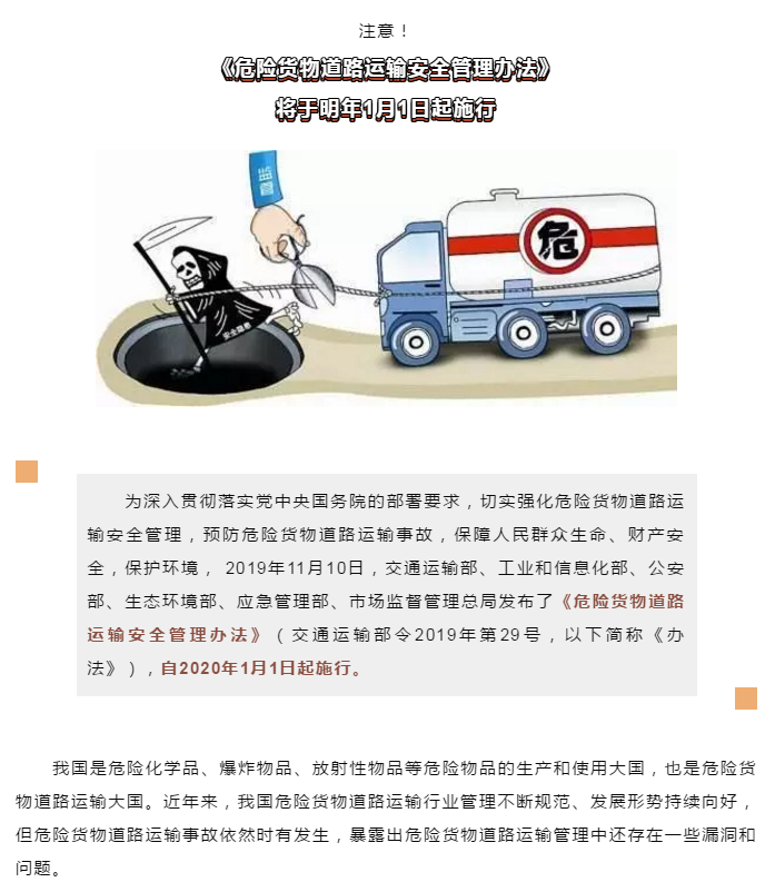 《危险货物道路运输安全管理办法》2020.1.1正式发布 ...