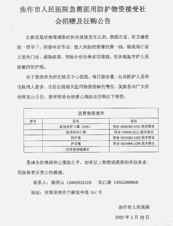 【多情絮语】今天得到消息,拜托大家转发扩散!多情的家乡焦作人民医院医疗物资告急,详见附图急需医疗物资清单,现急需捐助和征购,特告祝好,谢谢大家 ...