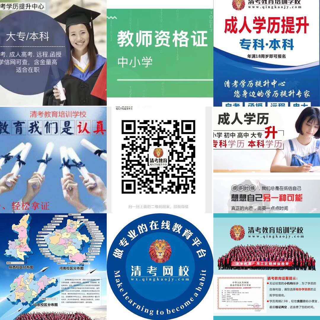 我们是清考教育集团。 河南省最大最安全的成人教育机构。与省内50+大学院校合作,有150+专业可供选择。 海量的专业教师能够专业地辅导你进行学历提升。 大专/本科——>函授、电大、远程 年满18周岁即可报名,无需到 ...