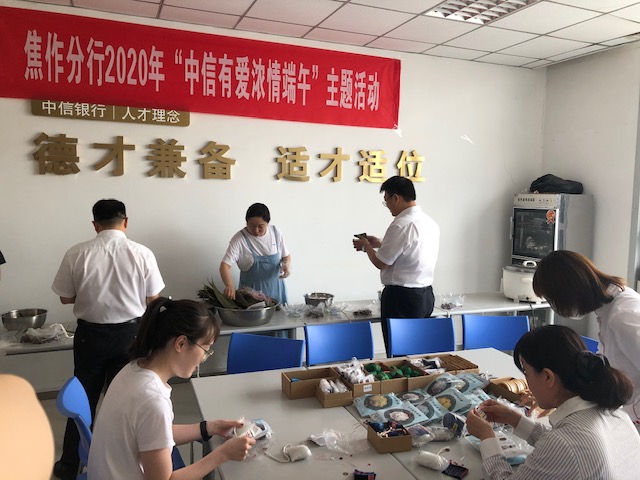 中信银行焦作分行开展2020年“中信有爱 浓情端午”主题活动 为体现分行党委对员工的关怀与关爱,进一步丰富职工文化生活,6月24日上午,中信银行焦作分行组织2020年“中信有爱 浓情端午”主题活动。分行各部门、营业 ...
