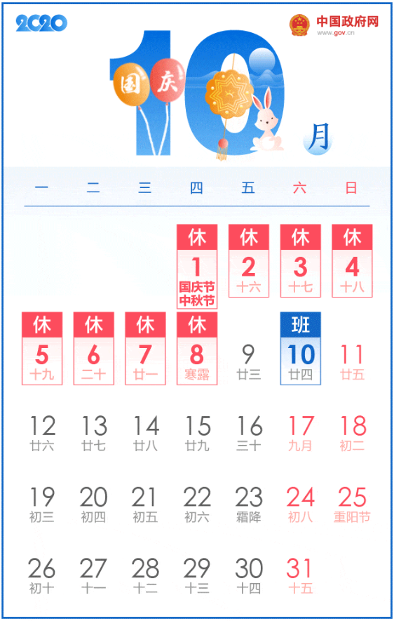 注意啦!再上8天班就放假啦!这些重要提醒你一定要知道↓↓↓今年中秋国庆放8天假根据今年的放假安排 中秋+国庆=8天长假 今年国庆、中秋是同一天!有些网友担心假期是不是变少了?其实并没有! 上海法学会劳动法 ...