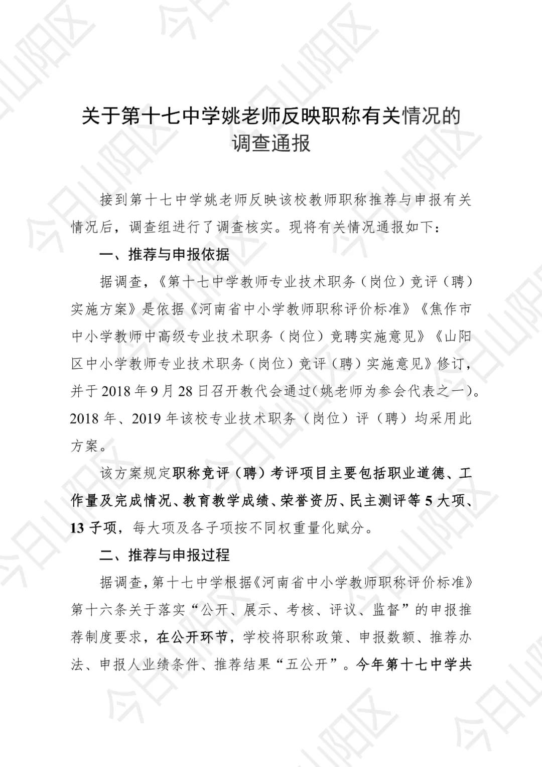 | 我看完了调查,感觉不知道该怎么说了;但是我相信如果姚老师没有实力也不会挑战整个考评体制的,敢于挑战说明知道里面有不公平,但是目前调查报告说,没有问题!舆论宁愿相信弱者,我支持事实!当然有时候事实真的不是能用报告来说清楚,我想……此事之后17中或者其他学校不会在存在此类情况,老师伤不起啊。 |