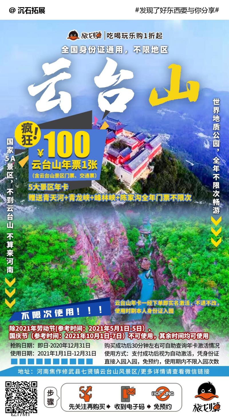 如果你错过了去年的云台山年卡,那么今年你还要错过么? 2021年云台山年卡开始预售了! 年卡售价 : 100元 使用时间 : 2021年1.1号-12.31号 全年不限次(5.1、10.1期间除外)门票景交全含,身份证实名认证,身份证刷 ...